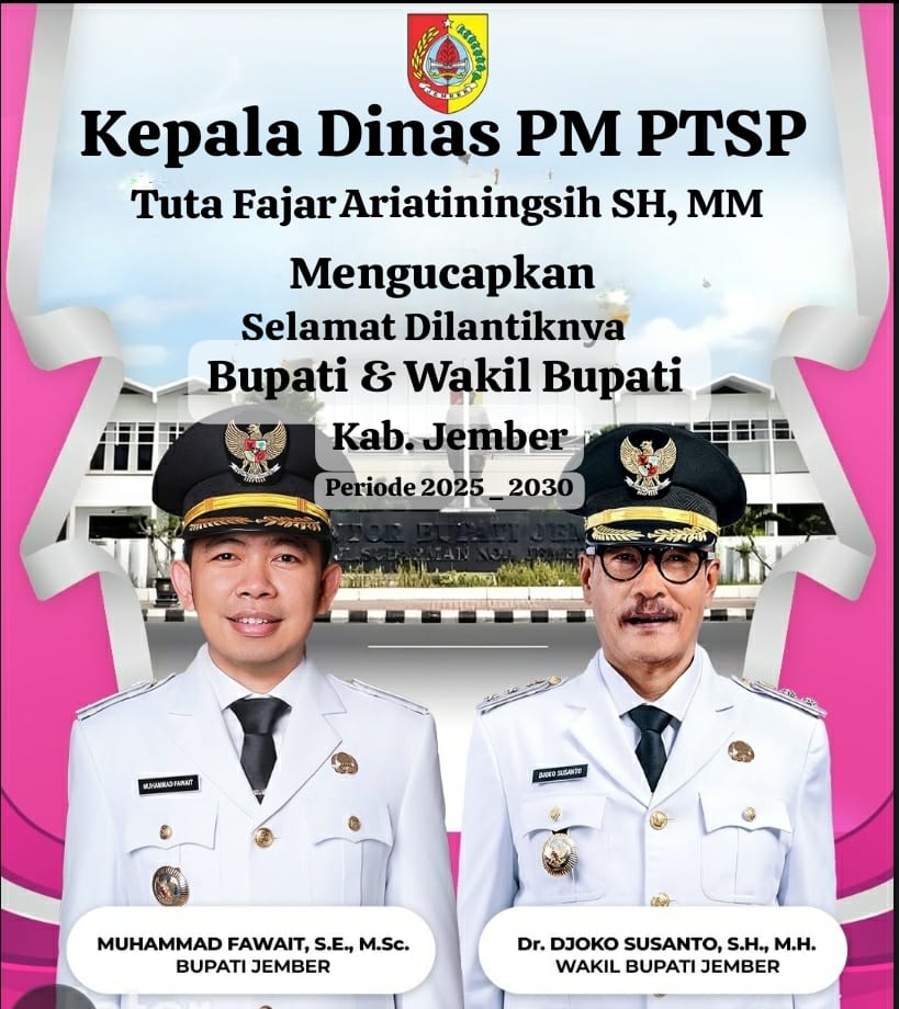 Selamat Dilantiknya Bupati dan Wakil Bupati Kabupaten Jember