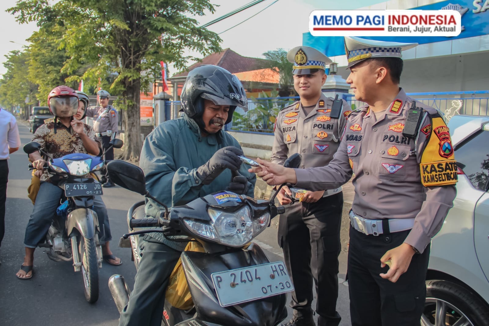 Tak hanya itu, pengendara yang belum menggunakan helm — baik pengemudi maupun penumpang — juga mendapat perhatian khusus.