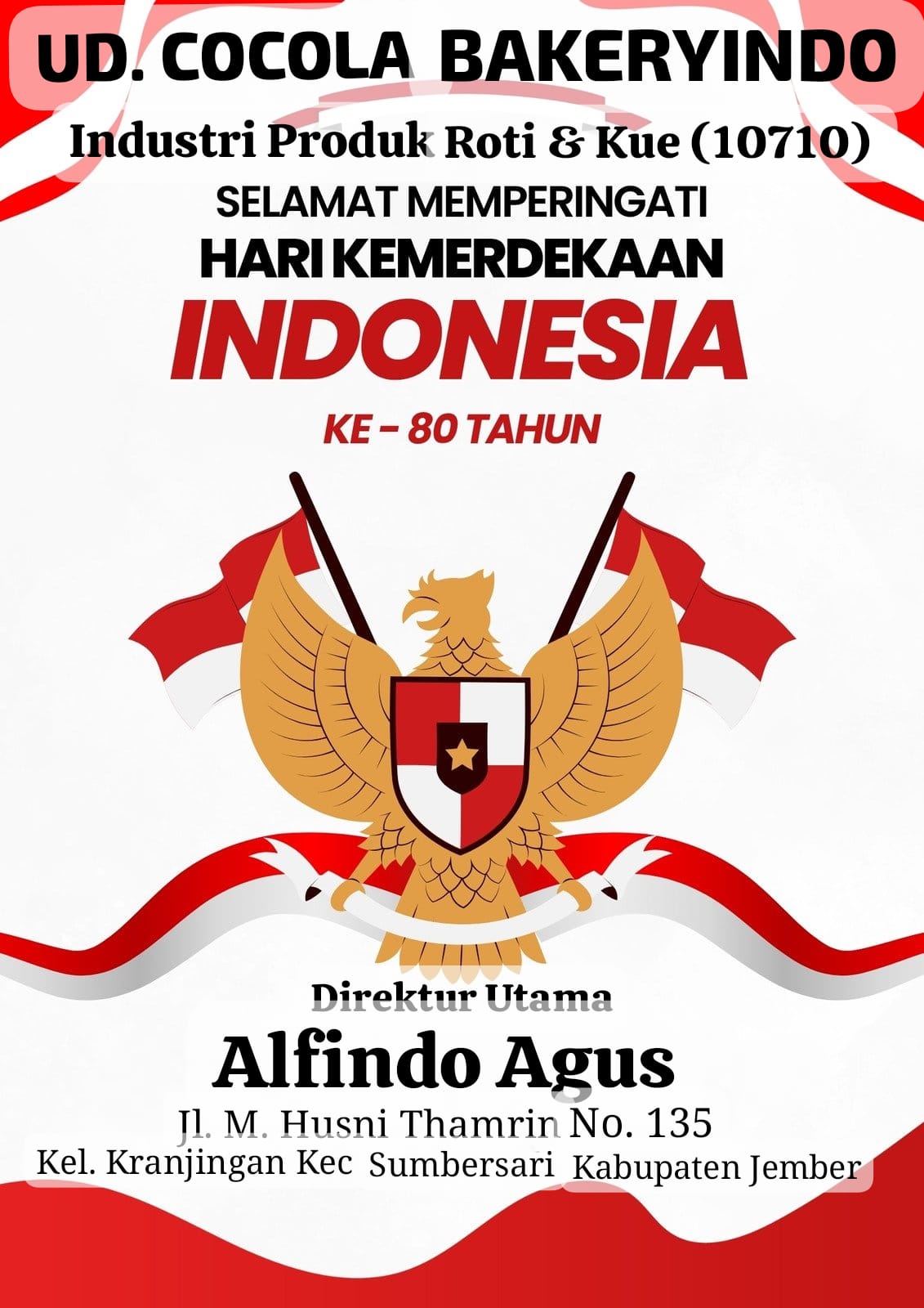 Direktur Utama : Alfindo Agus UD. COCOLA BAKERYINDOIndustri Produk Roti dan Kue (10710) Mengucapkan Selamat Memperingati Hari Kemerdekaan Republik Indonesia Ke-80 Tahun Jl. M. Husni […]
