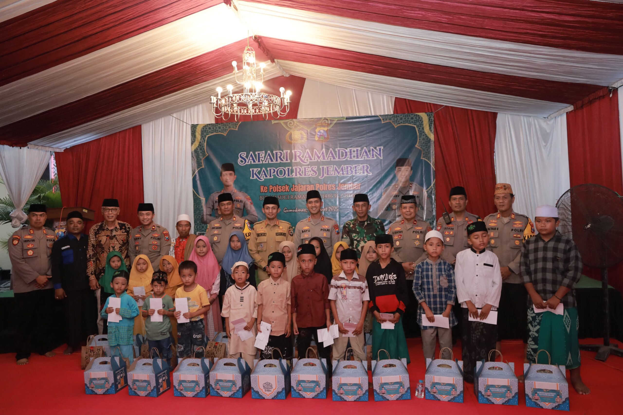 JEMBER, memo-pagi.com – Sebagai wujud kepedulian sosial di bulan suci Ramadhan, Polres Jember menyalurkan santunan kepada 100 anak yatim dalam kegiatan Safari Ramadhan yang digelar di Polsek Gumukmas, Kamis, (20/3/2025).