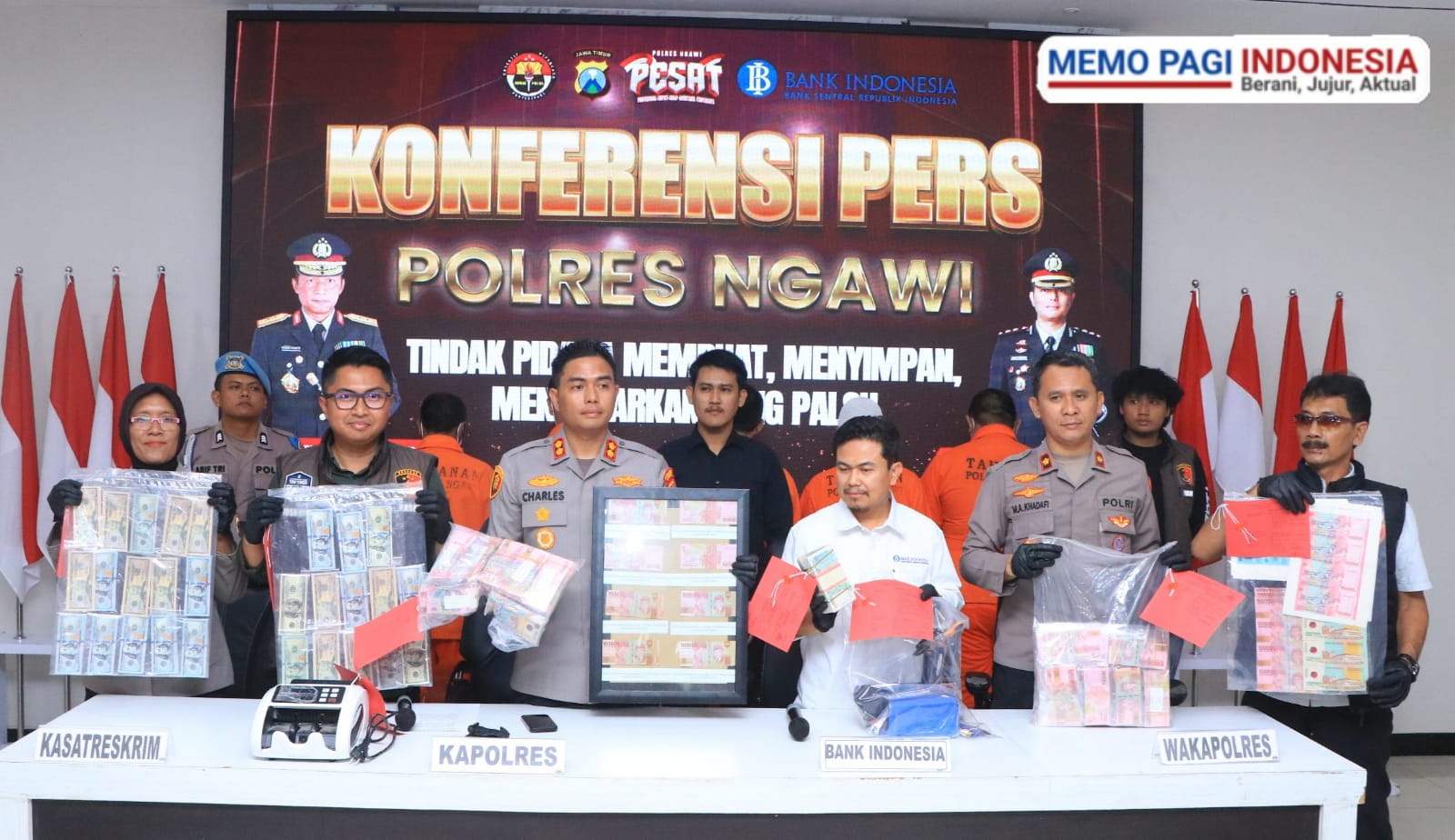 “Hal ini terungkap, bermula dari keresahan masyarakat, terkait beredarnya uang palsu di wilayah Ngawi,” tutur Kapolres Ngawi AKBP Charles Pandapotan Tampubolon saat konferensi pers di ruang Guyup Polres Ngawi, pada Jumat (30/5/2025)