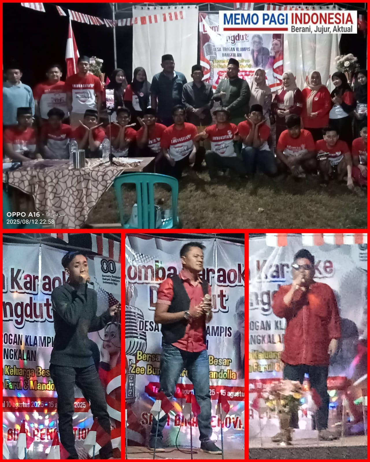 BANGKALAN, memo-pagi.com – Malam puncak Grand Final Lomba Karaoke di Desa Trogen, Kecamatan Klampis, Kabupaten Bangkalan berlangsung meriah pada Selasa (12/8/2025) malam.